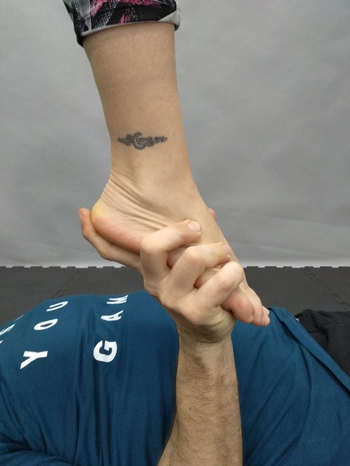 No es una figura en sí, sino algo básico para poder avanzar en muchos portes acrobáticos. Consiste en el agarre de los pies del ágil por el portor.